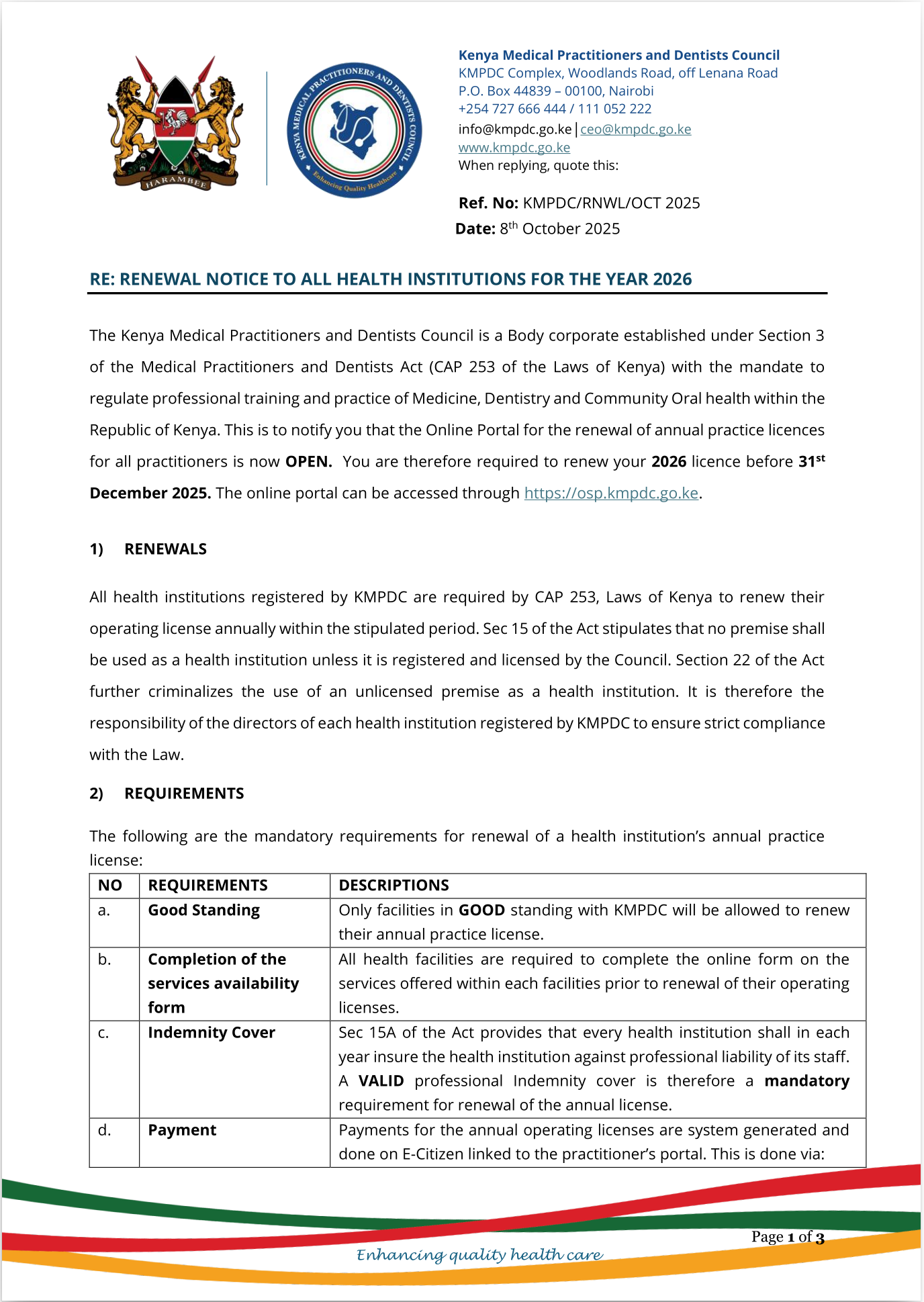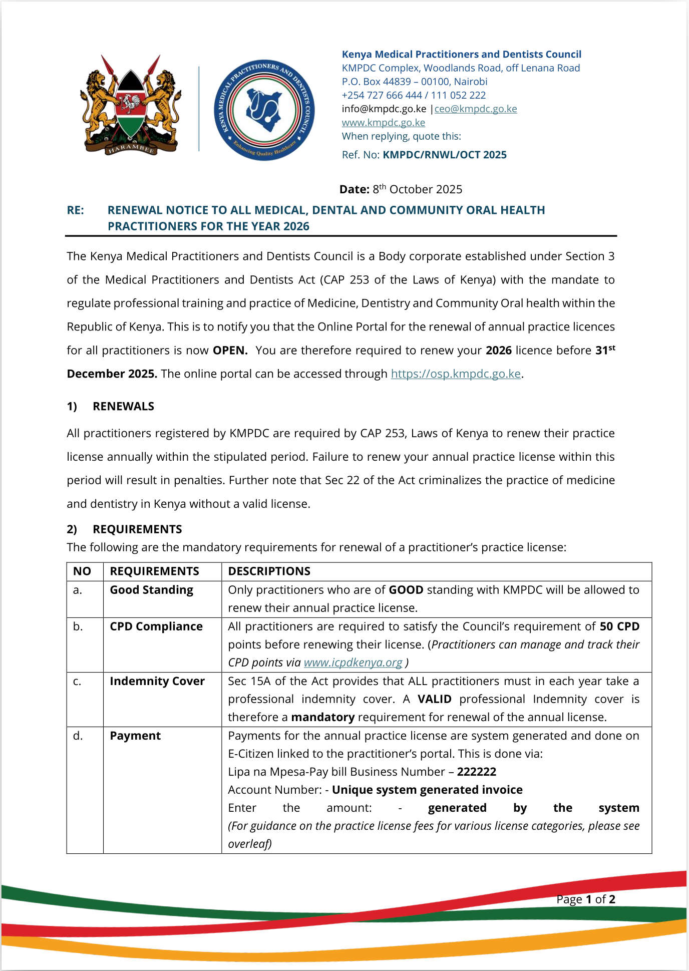 The National Assembly Departmental Committee on Health, led by their chair Hon. Dr. Robert Pukose, paid a courtesy call to the Kenya Medical Practitioners and Dentists Council (KMPDC) on 29th April, 2024. During the session at the KMPDC headquarters, discussions …